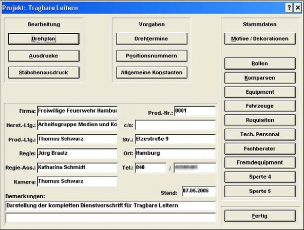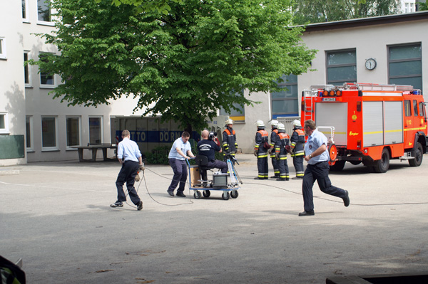 Als die Arbeitsgruppe Medien & Kommunikation (kurz: AG MuK) im Februar 2006 mit den Planungen für diesen Schulungsfilm begann, ahnte noch niemand wirklich, auf welches Projekt wir uns hier eingelassen haben. Nachdem die Vorplanung und die Gesamtplanung soweit abgeschlossen war, wurde noch die Planung für das erforderliche Personal vorgenommen und zu einem Casting in den Hamburger Wehren aufgerufen, um möglichst aus vielen Wehren Personal zu integrieren und einzubeziehen. Es folgte sogleich eine Infoveranstaltung für die Mitwirkenden zum Thema Dreharbeiten sowie ein Crashkurs in Filmtechnik. Denn schließlich hatten die wenigsten vorher schon einmal vor einer Kamera gestanden. Weiterhin galt es, einen Drehort zu finden, wo die Dreharbeiten ungestört stattfinden konnten. Wir entschieden uns für die Grundschule in der Knauerstraße, welches sich als geeignete Location anbot. An dieser Stelle bedanken wir uns bei der Grundschule Knauerstraße für die herzliche Aufnahme und für die tolle Unterstützung.