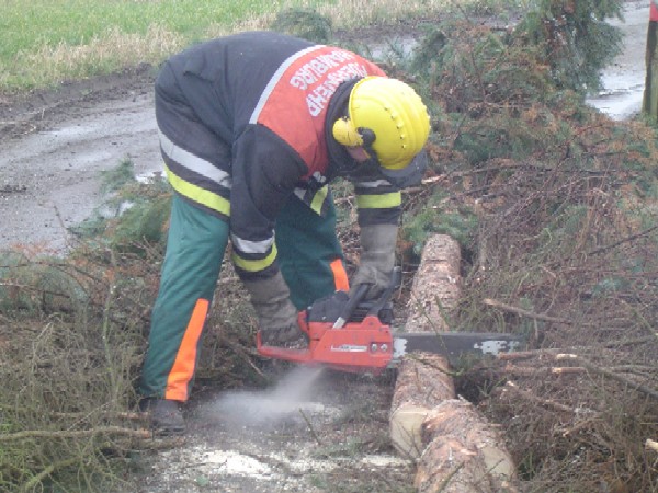 Große Sägeübung im Bereich Vierlande. „Achtung! Baum fällt!“ klang es immer wieder durch den trüben Februar Morgen.