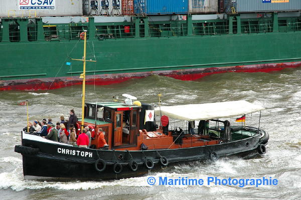 Nach einer Alarmierung am 03.02.07 gegen 10.00 h zu „THWA – droht Schlepper 19m lang zu sinken“ mussten die ausgerückten Kräfte feststellen, dass das auf der Peute an einem Ponton vertäute Schiff bereits unter die Wasseroberfläche versunken war. Es war nichts mehr zu sehen, außer einem Ölfilm, der sich langsam auf dem Elbwasser bildete. Bei dem Schiff handelt es sich um den im Jahr 1927 bei Stülcken-Werft gebauten historischen Schlepper „Christoph“ (Lg. 17,64m, Br. 5,14m). Die Ursache ist derzeit noch unbekannt.