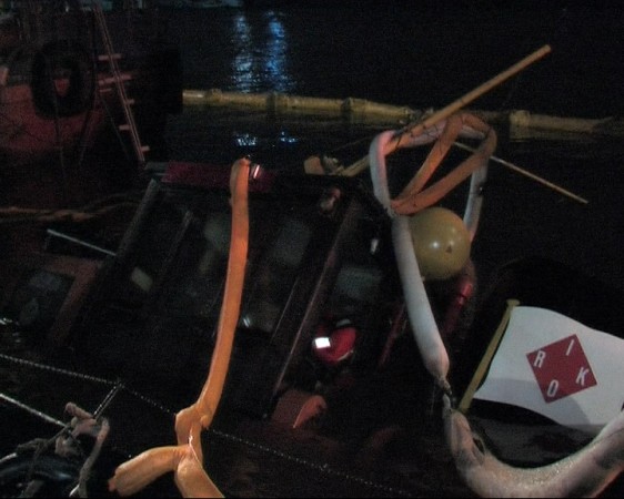 Die Hebung des Schleppers erfolgte in der Nacht zum Sonntag. Ein Kamerateam der AG Medien und Kommunikation war vor Ort und dokumentierte den Einsatz der SEPCON-Anlage und Vorbereitungen zur Schiffsbergung.