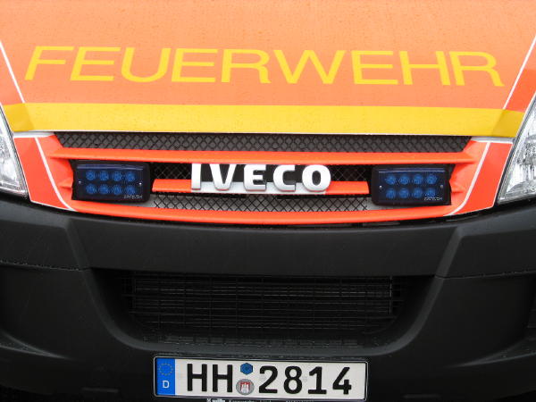 Erstmalig ist ein Fahrzeug der Feuerwehr Hamburg mit einem LED-Signalbalken (Fabr. Hänsch, nur elektronische Signalerzeugung) und entsprechenden Frontblitzleuchten in LED-Technik ausgerüstet.