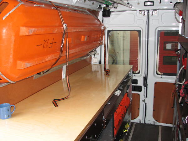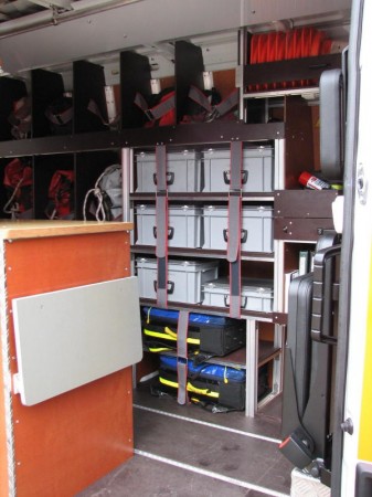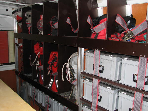 Der neue GW ist auf einem Iveco Daily 50 C 18 mit Allradantrieb und Automatikgetriebe aufgebaut. Im Aufbau herrscht bei einer Stehhöhe von 1,90m Platz für fünf Höhenretter zuzüglich der benötigten Ausrüstung .
