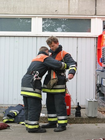 Am Samstagmorgen, den 21.04.07, trafen sich die Anwärter, Ausbilder und Helfer am Feuerwehrhaus der FF Rissen. Von dort ging es dann zum Gymnasium Rissen, wo die Abnahme zur Truppmannprüfung Teil 1 stattfand.
