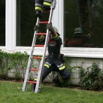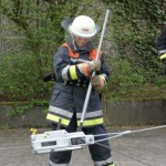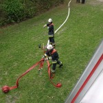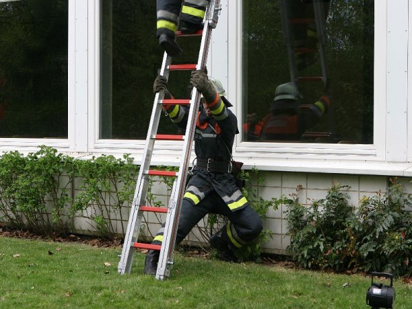 Im Brandschutzteil mussten die Anwärter über eine Steckleiter in das erste Obergeschoß vordringen sowie Axt, Beleuchtung und C-Strahlrohr einbinden.