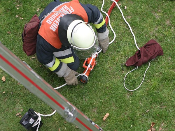Bei der technischen Hilfe sollte ein Kfz., welches an einem Hang stand, mit dem Greifzug vor dem Wegrollen gesichert werden.