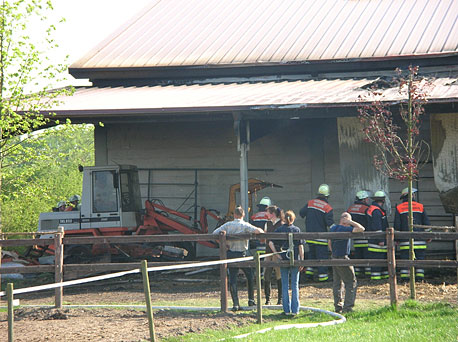 Etwa gegen 14 Uhr fing bei einem Sülldorfer Bauern ein Strohlager Feuer. Blitzschnell breiteten sich die Flammen auf das Dach und den angrenzenden Pferdestall aus.