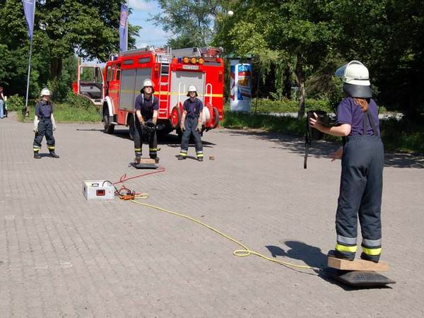 Zu den einzelnen Übungen gehörten eine Schlauchbootstation, ein Funklabyrinth, ein Bockleiterparcours und die Durchführung einer Tiefenrettung. Ferner wurde Wissen und Können im Bereich des Sanitätsdienstes, im Umgang mit Sägen sowie dem Greifzug geprüft. Auch war teilweise Geschick und Ausdauer von Nöten, wenn es bspw. galt, Getränkekisten möglichst hoch unter Sicherung über die Absturzsicherung zu stapeln, sich auf Hebekissen balancierend einen Ball zuzuwerfen oder das LF ohne Benutzung der Außenspiegel rückwärts einzuparken, nachdem dieses zuvor von der Mannschaft über einen Parkplatz geschoben worden war. Im Bereich der FwDV 3 waren außerdem eine Person aus einem brennenden Keller zu retten sowie das Saugen aus offenem Gewässer auf Zeit durchzuführen.