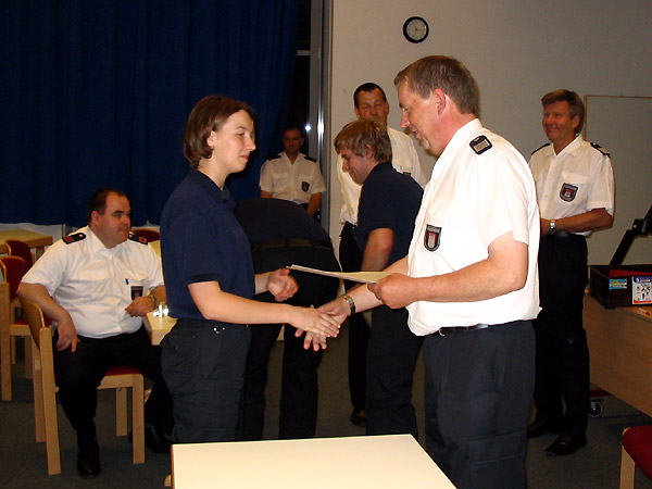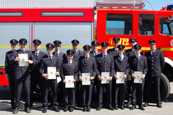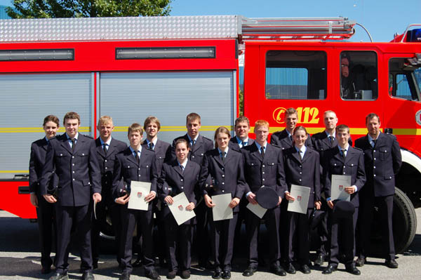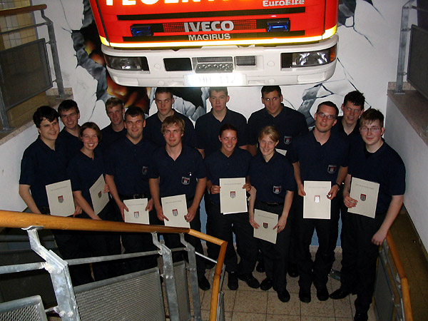 Die weitere Ausbildung erfolgt jetzt in den einzelnen Wehren und endet im Sommer 2008 mit der Abschlußprüfung durch die Berufsfeuerwehr an der Landesfeuerwehrschule.