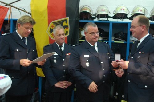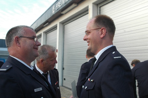 Im Anschluß an die Ehrung feierte Jörn mit seiner Frau Alexandra, der Familie und den Kameraden bis in die frühen Morgenstunden im Feuerwehrhaus am Bergmannring. Pünktlich um Mitternacht stieß man dann auch noch auf seinen 43. Geburtstag am 15.08. an.