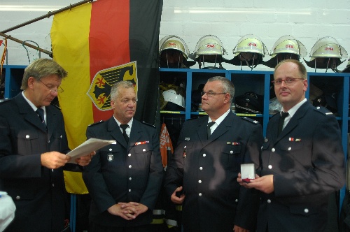 Bereichsführer Bernd Nohdurft nahm die Ehrung vor und überbrachte die Urkunden des Innensenators Udo Nagel ,des Branddirektors Klaus Maurer und des Landesbereichsführers Hermann Jonas.