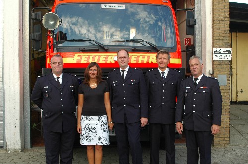 Wehrführer Jörg Plagens,Alexandra Grage,Jörn Grage,Bereichsführer Bernd Nohdurft und Wehrführervertreter Ingo Hagemann