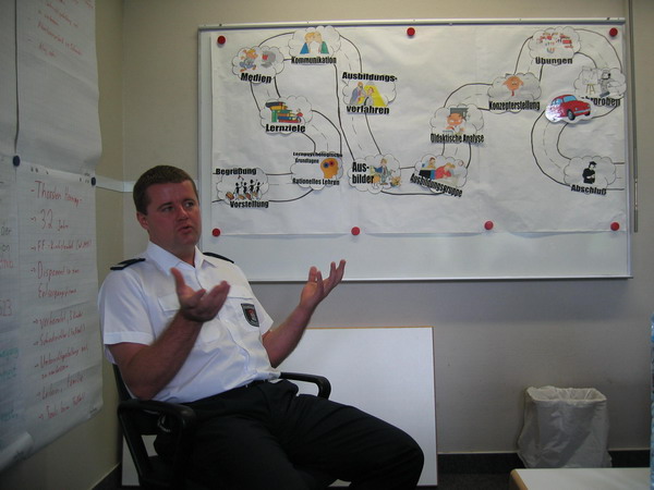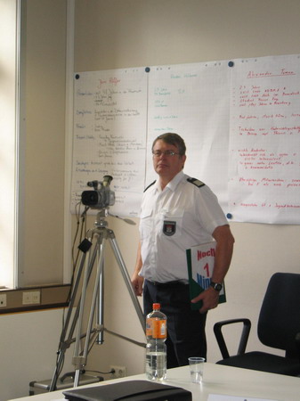 Im Anschluss an die jeweiligen Lehrproben äußerte sich stets zunächst der Unterrichtende zu seiner Leistung, worauf das Feedback der anderen Lehrgangsteilnehmer und Ausbilder folgte. Ferner wurden die theoretischen Unterrichtseinheiten gefilmt, so dass sich jeder auch noch einmal selbst beim Unterrichten beobachten konnte. All dies führte dazu, dass allseits enorme und konstante Steigerungen hinsichtlich der Lehrfähigkeit während der zweiwöchigen Ausbildung festgestellt werden konnten.