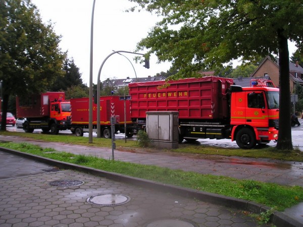 Die Hauptaufgabe der Einsatzkräfte bestand darin vollgelaufene Keller und überflutete Straßen von den Wassermassen zu befreien. Ein Einsatzschwerpunkt befand sich in der Winsener Str., wo eine ganze zusammenhängende Häuserzeile betroffen war. Die Keller und Fahrstuhlschächte waren vollgelaufen und Personen mussten aus den Fahrkörben befreit werden. Dort waren über längere Zeit allein vier FF, der BerF Harburg und der B-Dienst Süd sowie Kräfte von F32 gebunden.