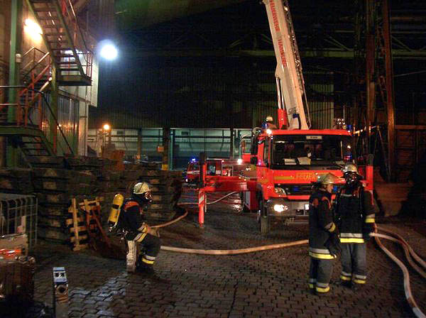 Heute abend gegen 19.30 Uhr kam es in einem großen Industriebetrieb in der Hovestr. aus bisher ungeklärter Ursache zu einem Großbrand.
