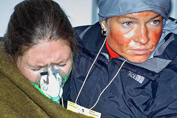 Die über 50 Verletztendarsteller wurden nahezu perfekt vom Team der Realistischen Unfalldarstellung der JuH in Zusammenarbeit mit der SEG des DRK geschminkt und betreut.