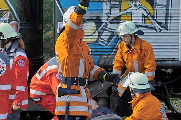 Im zweiten Szenario war es zu einer Kollision zwischen einem PKW und einer Vorortbahn gekommen. Durch die Zwangsbremsung und der erfolgten Kollision wurden im Zug wiederum eine Vielzahl an Personen teilweise schwer verletzt. Im Pkw war der Fahrer eingeklemmt. Unter dem Zug lag ein Schwerletzter.