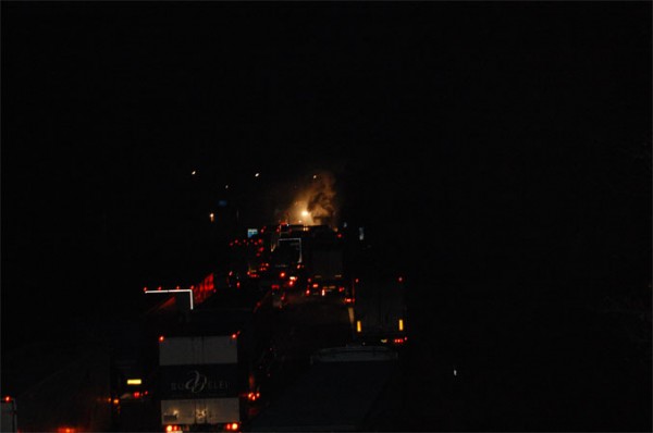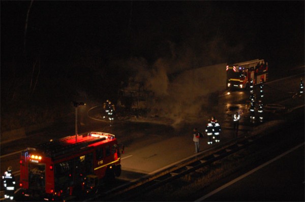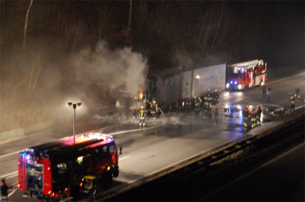 Am 27.11.2007 um 1:23 Uhr bemerkte der Fahrer eines mit Obst, Gemüse und Blumen beladender Kühl-Lastkraftwagen dichten Qualm aus dem Motorraum aufsteigen.