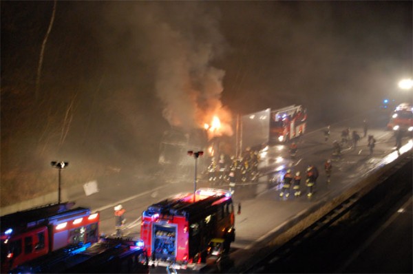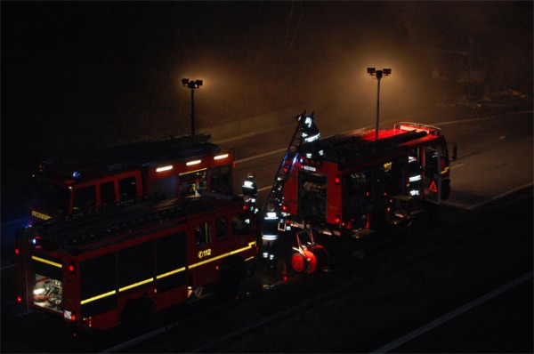 Feuerwehr im Großeinsatz auf der Autobahn 1
