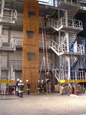 Im Bereich Brandschutz musste eine Schiebleiter in Stellung gebracht und korrekt gesichert sowie verschiedene Geräte eingebunden werden.