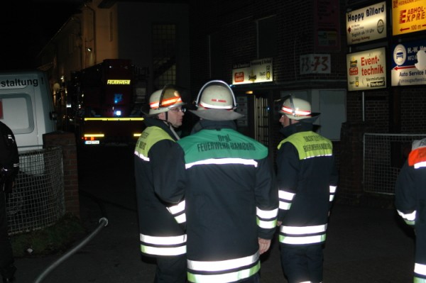 Das 20×30 Meter große Gebäude brannte im 1. OG fast vollständig aus und das Feuer breitete sich bis ins 2. Obergeschoss aus. Der anwesende Einsatzleiter der Feuerwehr Hamburg bemerkte ein weiteres Übergreifen auf das nebenstehende Backsteingebäude und erhöhte auf Feuer 3. Deshalb machte sich der Löschzug 33 (Veddel) auf dem Weg zum Einsatzort. Das Feuer wurde mit 2 Drehleitern und diversen C-und B-Rohren im massiven Außen- und Innenangriff bekämpft. Mithilfe des Teleskopmastfahrzeugs 25 wurde das Dach weitestgehend abgetragen, um restliche Glutnester zu löschen. Die Einsatzkräfte waren bis 4 Uhr morgens im Einsatz.