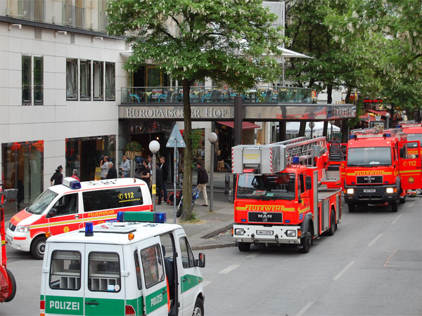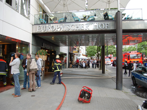 Um 18:59 Uhr wurden die ersten Kräfte zu einem Feuer 3 in die Kirchenallee in Hamburg-St. Georg alarmiert. Um 19:25 Uhr wurde von der Einsatzstelle "Hotel Europäischer Hof" auf Feuer 5 erhöht.