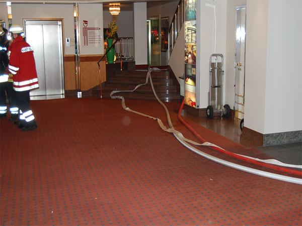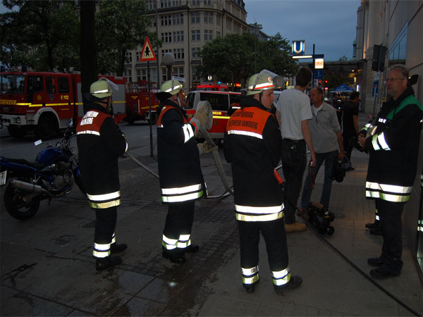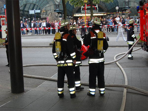 Großeinsatz für die Feuerwehr Hamburg in der Kirchenallee 45, direkt am Hauptbahnhof in einem 4 Sterne Hotel. Die Einsatzkräfte mussten gleichzeitig zwei Feuer in zwei Geschossen bekämpfen, da dort Einrichtungsgegenstände im Bereich des Speiseraums und ein Papiercontainer im anderen Geschoss brannten. Das hat dazu geführt, dass das Gebäude stark verraucht war, worauf die Feuerwehr 38 Personen, teilweise mit Fluchthauben, aus dem Hotel rettete. Der Einsatzleitung waren insgesamt 241 Personen gemeldet, deshalb war das Großaufgebot eine gute einsatztaktische Maßnahme, die für den schnellen und sicheren Abschluss des Einsatzes sorgte.