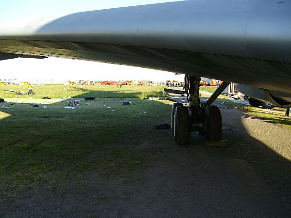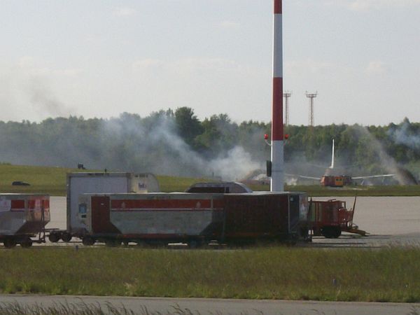 Rechts im Bild: Die Rettungstreppe der Flughafen-Feuerwehr