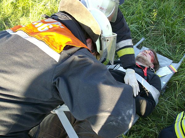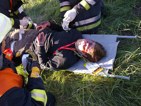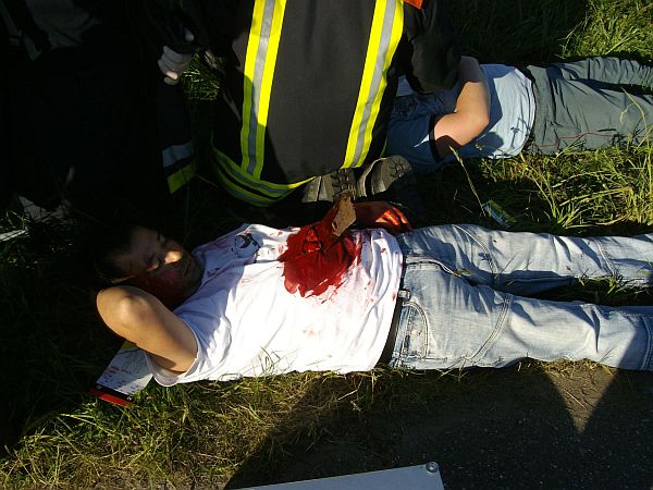 Äußerst realistisch geschminkt und schauspielerisch gut auf ihre Rolle vorbereitet stellten Helfer die Verletzten dar.