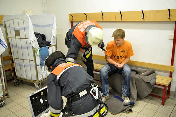 Um 20 Uhr stand das positive Ergebniss des Tests für alle Teilnehmer fest und jeder der elf Teilnehmer musste die acht praktischen Übungs-Stationen abarbeiten.