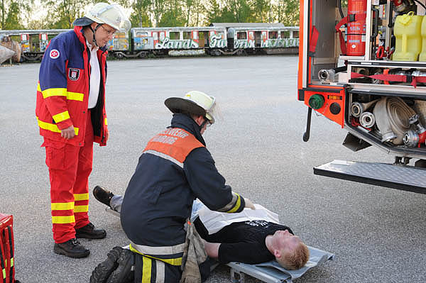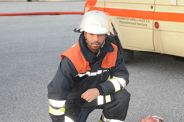 Ausser den beiden genannten Wehren war zum ersten Mal auch die schleswig-holsteinische FF Delingsdorf als übende Einheit beteiligt. Der Rettungsdienst wurde durch die Johanniter-Unfall-Hilfe sichergestellt. Für eine reibungslose Kommunikation sorgte die FF Berliner Tor und die realistische Unfalldarstellung des DRK schminkte unsere Verletztendarsteller der FF Öjendorf und der FF Bergedorf zum Fürchten gut.Ausserdem bedanken wir uns bei allen tatkräftigen Helfern der LFS und der Feuerwache Billstedt.