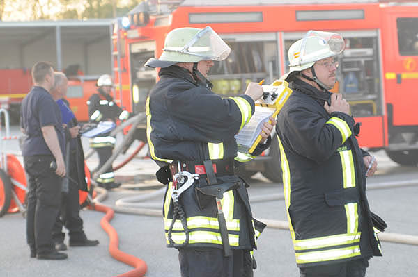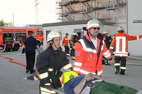 Ein betroffener Mitarbeiter berichtete von insgesamt 8 Personen , die sich zum Zeitpunkt der Explosion im Gebäude aufgehalten haben sollen. Sofort wurde auf FEUY2 erhöht und die niedersächsische FF Salzhausen mit einem TLF und einem LF wurde zur Verstärkung an das Übungsobjekt geschickt.
