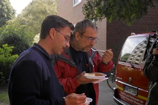 Bereits um 06:45 Uhr traf sich das Drehteam im Feuerwehrhaus der FF Altona um gemeinsam zu frühstücken und den weiteren Tagesablauf zu besprechen.