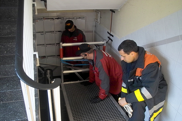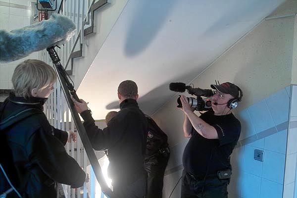 Dreh im engen Treppenhaus, echt gemütlich