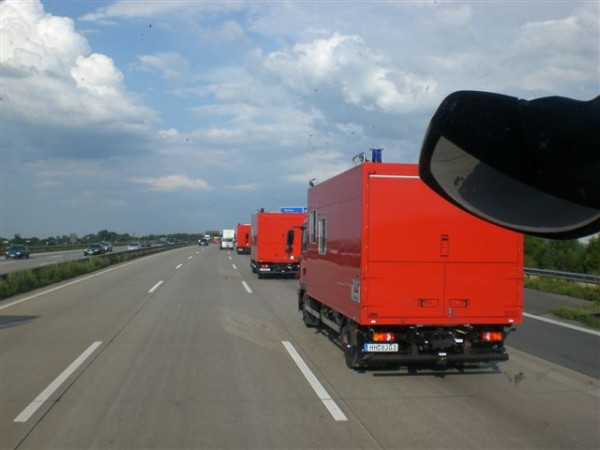 Der Startschuss zur Abholung der 7 neuen Fahrzeuge fiel am 25. Juli 2008 und 4 Uhr – in Worten vier. Nach einem kurzen Briefing setzte sich die Gruppe mit ihren zwei Craftern um 4:15 Uhr in Marsch. Ziel der Fahrt durch die Nacht war die Firma Baumeister & Trabandt in Korschenbroich bei Düsseldorf.