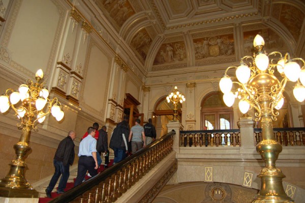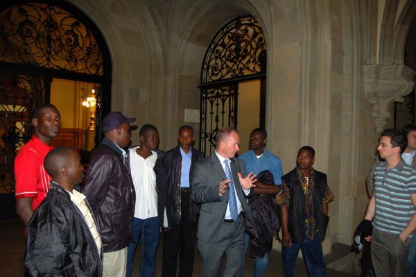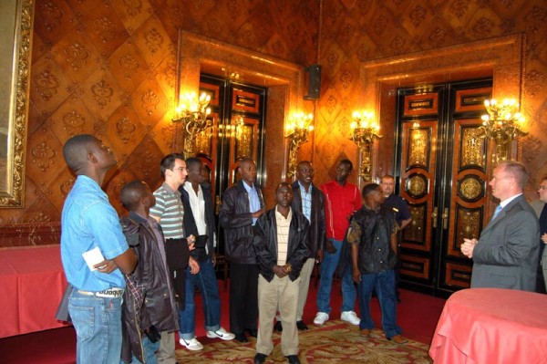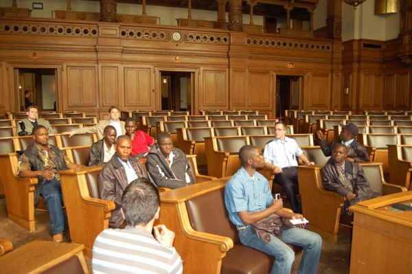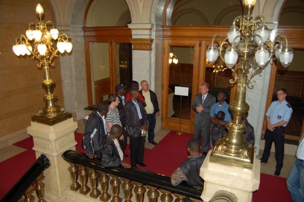 Drei Tage später stand ein ausführlicher Besichtigungstermin des Hamburgischen Rathauses auf dem Programm. Der Fraktionsvorsitzende Michael Neumann selbst führte die ausländische Delegation durch das Regierungsgebäude. Anschließend gab es Erfrischungen in einem Saal des Rathauses. Herr Neumann erklärte den afrikanischen Gästen die Hamburgische Regierung und das Wahlrecht. Die jungen Leute aus Tansania zeigten sich beeindruckt vom prunkvollen Rathaus und waren an den politischen Themen sehr interessiert.
