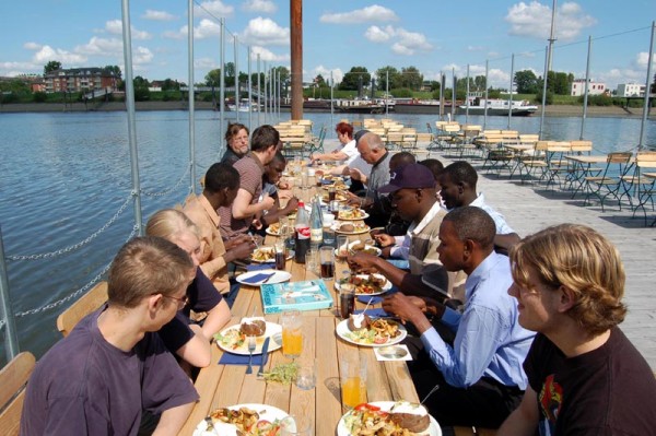 Das gemeinsame Mittagessen auf dem Ponton in der Billwerder Bucht