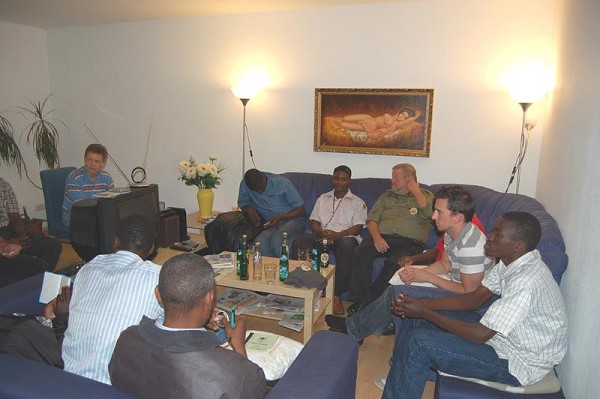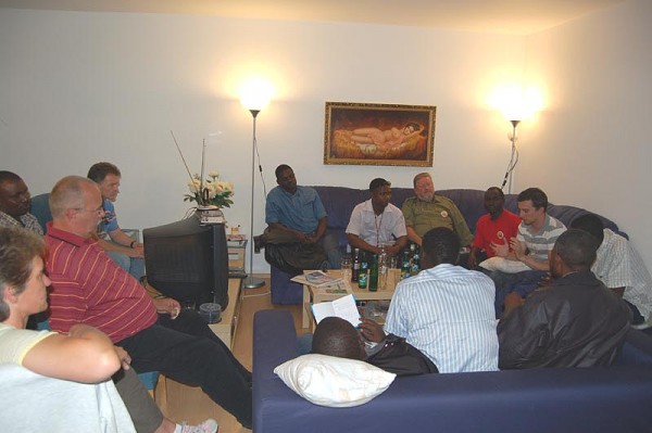 Den Abschiedsabend verbrachten alle afrikanischen Gäste und fast alle deutschen Begleiter gemeinsam zuhause bei Jörg Plagens, dem WF der FF Billstedt-Horn. Seine Frau Elisa, selbst Afrikanerin, kochte eine scharfe Spezialität aus ihrem Heimatland Togo, was bei einigen Gästen das Blut in Wallung brachte und den Schweiß auf die Stirn trieb. Erst spät in der Nacht trennten man sich, allerdings nicht, ohne sich freundschaftlich „auf ein nächstes Mal“ zu verabreden.