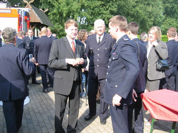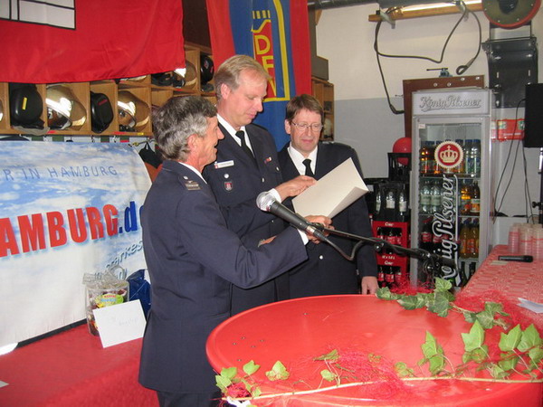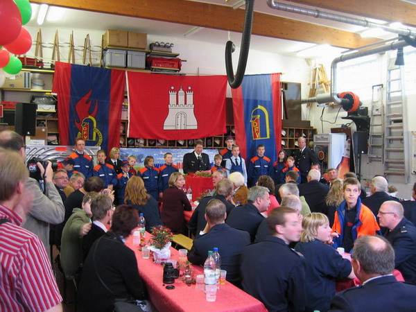 Zu den ca. 120 Gästen gehörten u.a. Dr. Stefan Schulz, Staatsrat der Innenbehörde, der leitende Branddirektor Werner Thon als Vertreter des Amtsleiters, Landesbereichsführer Hermann Jonas, Landesbereichsführervertreter Nord André Wronski, Landesjugendfeuerwehrwart Uwe von Appen und der Bereichsführer Walddörfer Dirk Lübkemann.