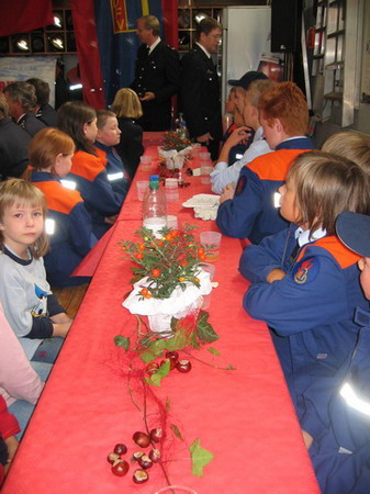Nun sollte der offizielle Teil allmählich zu einem Ende kommen und es konnte zum gemütlichen Teil der Veranstaltung übergegangen werden, so dass auch das umfangreiche Buffet – zusammengetragen von den Eltern der Kinder, den Wehrmitgliedern sowie ihren Angehörigen – eröffnet werden konnte.