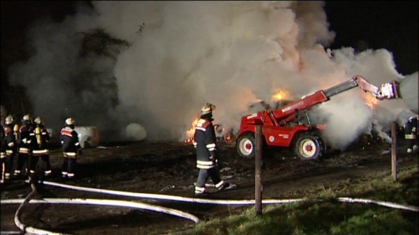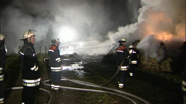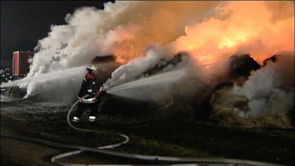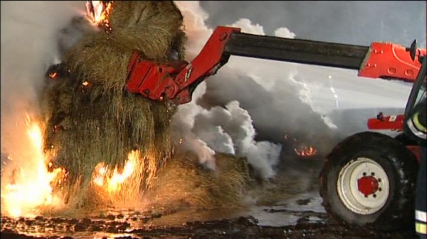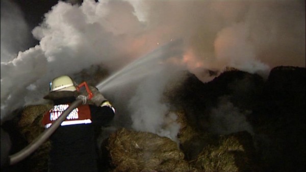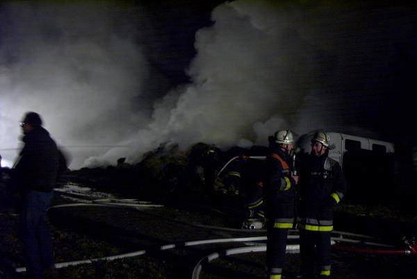 Mit 2B und 5C-Rohren wurde der Primärbrand bekämpft. 3 C-Rohre löschten das auseinandergezogene Stroh nach.