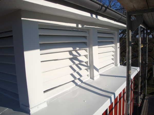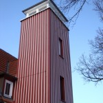 Bei winterlichen Temperaturen haben die Kameraden der FF Berne die alte schadhafte Holzverkleidung entfernt und eine komplett neue Unterkonstruktion angebracht. Darauf wurde dann die neue Fassadenverkleidung montiert. Im oberen Teil des Turmes und an den Fenstern mussten diverse Abdeckungen aus Zinkblech erneuert werden und auch das Turmdach wurde saniert. Als es dann ein paar frostfreie Tage gab, konnten schliesslich noch die Fenster und die Lamellen mit einem neuen Farbanstrich versehen werden. Nach rund 480 Arbeitsstunden erstrahlte der unter Denkmalschutz stehende Turm wieder in seiner alten Schönheit.