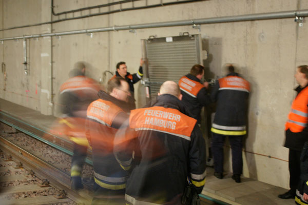 Mitglieder der Freiwilligen Feuerwehren Altona, Lokstedt und Osdorf haben in der Nacht zum 28.02.2009 den S-Bahn-Tunnel zwischen Ohlsdorf und dem Flughafen erkundet.