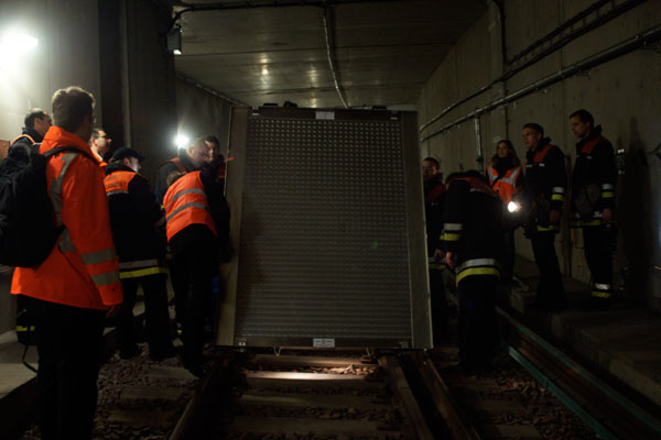 Rettungswege, Notausstiege, Rettungsmittel, Kommunikationsmöglichkeiten und Belüftungssysteme wurden von den Notfallmanagern der Bahn demonstriert und erklärt.