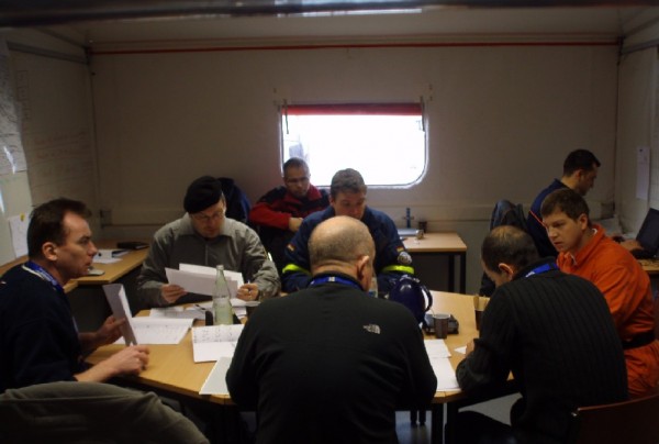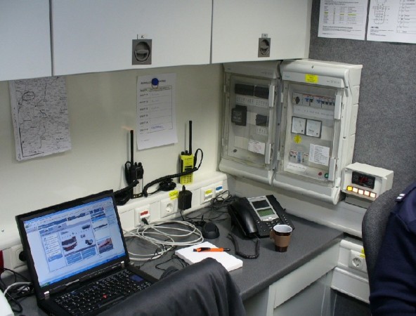 Als „Staff“ war es die Aufgabe der Kameraden der FF Wandsbek-Marienthal, das Team „Alpha“ bei deren Aufgabe weitgehend zu unterstützen. So wurden z. B. über Internet Informationen über die geographischen Gegebenheiten der Region oder auch Transportkapazitäten abgefragt. Und da in unserem GW-FM der einzige Fax-Drucker-Kopierer aufgestellt war, erfüllte unser Fahrzeug auch noch die Funktion eines Copy-Shop. Langeweile kam jedenfalls nicht auf und als geistiger Nebeneffekt konnte jeder sein mehr oder wenig vorhandenes Englisch etwas auffrischen.
