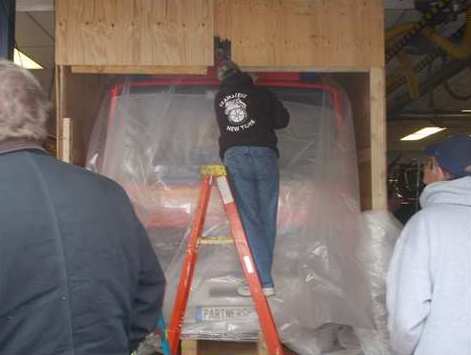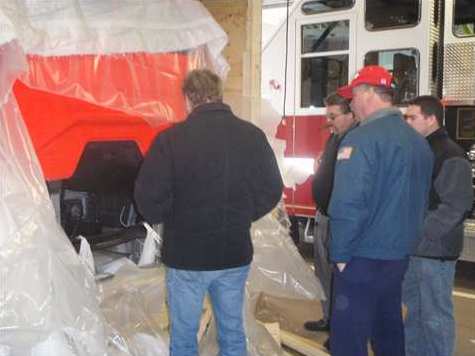Insgesamt mussten 6.124 Kilometer Seeweg zurückgelegt werden: Nach zweiwöchiger Überfahrt über den Atlantik, hat das „halbe Löschfahrzeug“ Anfang April unbeschädigt ihren Bestimmungsort, die Hauptfeuerwache des Mineola Fire Departments in Nassau County, New York erreicht.