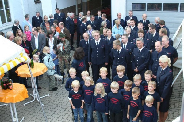 Von der Berufsfeuerwehr überbrachte der A–Dienst Heino Peters die Grüße des Amtsleiters Klaus Maurer und vom Bezirksamt Wandsbek war der Regionalbeauftragte Karsten Schmidt Grunert als Abordnung der Bezirkes dabei. Zahlreiche Gäste aus den Vereinen aus Sasel, der Berufsfeuerwehr Sasel und der umliegenden Wehren gaben den Minis den würdigen Rahmen.