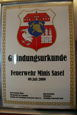 Am Donnerstag, dem 9. Juli 2009 war es soweit: die ersten Feuerwehr-Minis wurden in Sasel gegründet. Über 100 Gäste waren an den Saseler Parkweg in das Feuerwehrhaus der FF Sasel gekommen.