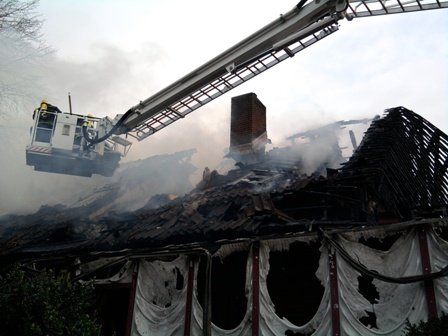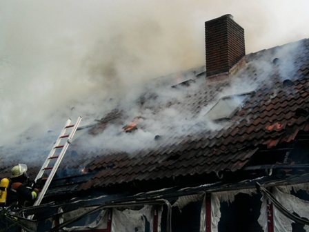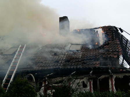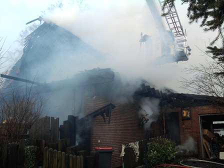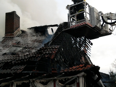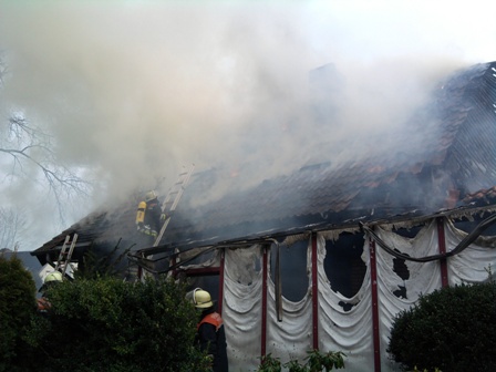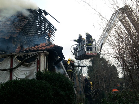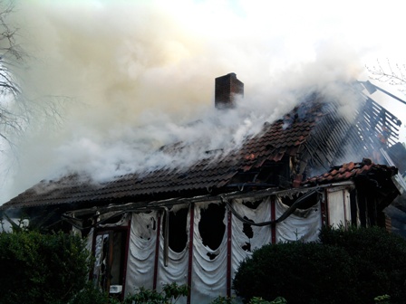 Zum Glück sind bei diesem Feuer nur Sachwerte zerstört worden; die Bewohner waren glücklicherweise nicht zu Hause.