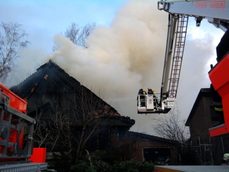 Es sollte dort ein Einzelhaus brennen. Dem zuerst eintreffenden Zugführer der FF Niendorf bot sich folgendes Bild: ein Einzelhaus brannte in ganzer Ausdehnung. Die vom Feuer ausgehende Hitze war so stark, dass man sich vor dem Gebäude auf dem ca. 4 Meter entfernten Gehweg nicht aufhalten konnte. Die FF Niendorf erhöhte sofort auf Feuer 2.