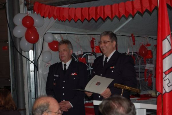 Jonas unterstrich, dass das zusätzliche ehrenamtliche Engagement, dass Hagemann über Jahrzehnte mit seiner Arbeit im Arbeitskreis 03 – Fahrzeuge und Technik – zeigte besonders zu würdigen sei. Er dankte für 41 Jahre Feuerwehrdienst und Dienst am Bürger.